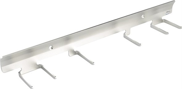 Stainless steel wall bracket featuring ultra-hygienic design. A special mount ensures distance to the wall, ensuring easy cleaning between the bracket and wall. Store cleaning tools on wall brackets to increase their durability.